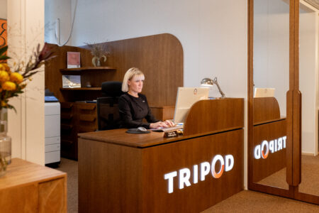 Enter the building from the courtyard/parking lot. There are three entrances, all of which provide access to the offices. Please pass the MinBowl seating area, the hanging chairs and the reception area. There are two small green sofas at the back of the lobby. Elevators are around the corner to the left of these. NB: Please use the elevator to access the second floor.